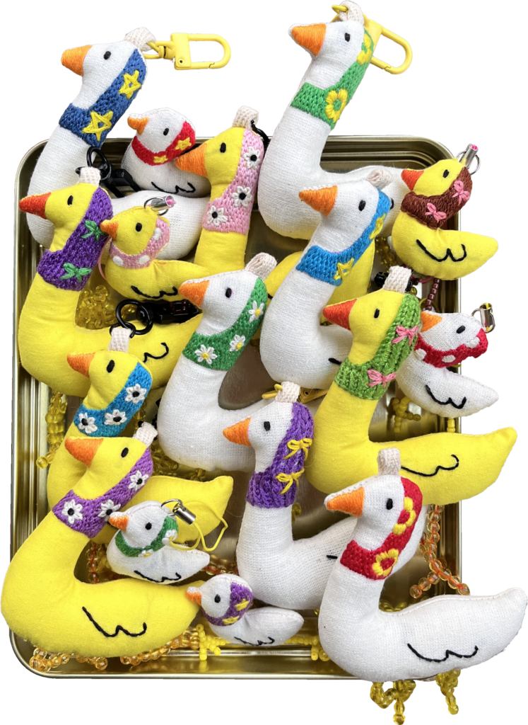 The vary style of making art whether it’s digital illustration or handmade art piece is the reason why she called it Madeness. In a room full of creativity flowing, inspired by daily consumption on the internet of silly animals, fashion outfit even poetic lyrics by making it sketches and into stitch.
